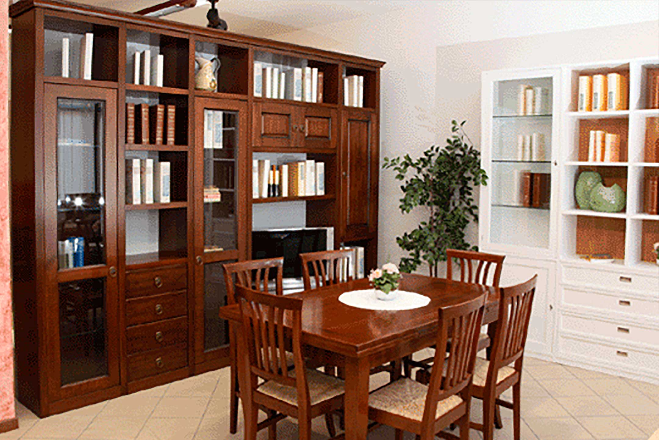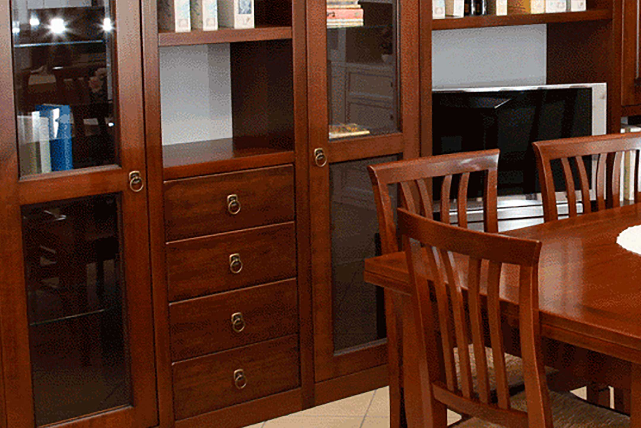 Cristalliere, credenze, librerie, tavoli e composizioni a parete.